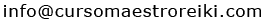 Si usted desea contactarse con nuestro Servicio al Cliente para obtener asistencia técnica, comentarios, sugerencias, dudas, expresarnos su historia de éxito, o simplemente para hacer preguntas acerca de mi libro electrónico “Curso Maestro Reiki™”, por favor utilice el siguiente e-mail: